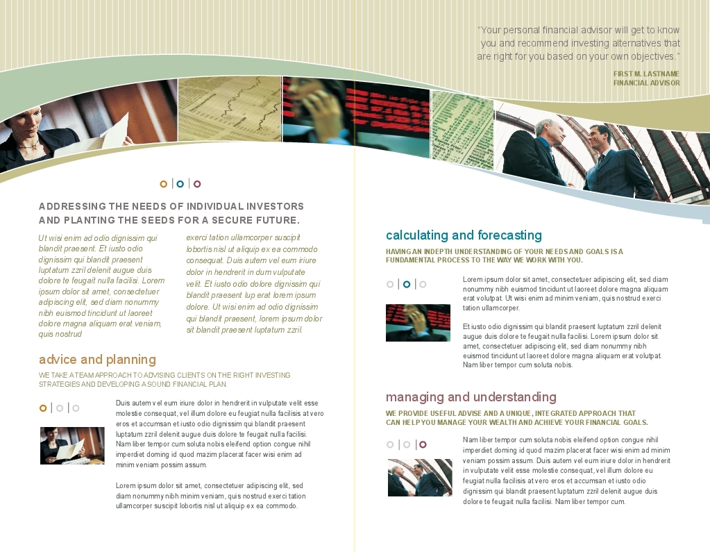 - Choose the brochure template you want and place into the provided layout (framed borders, bleeds, trim lines, safe areas provide).