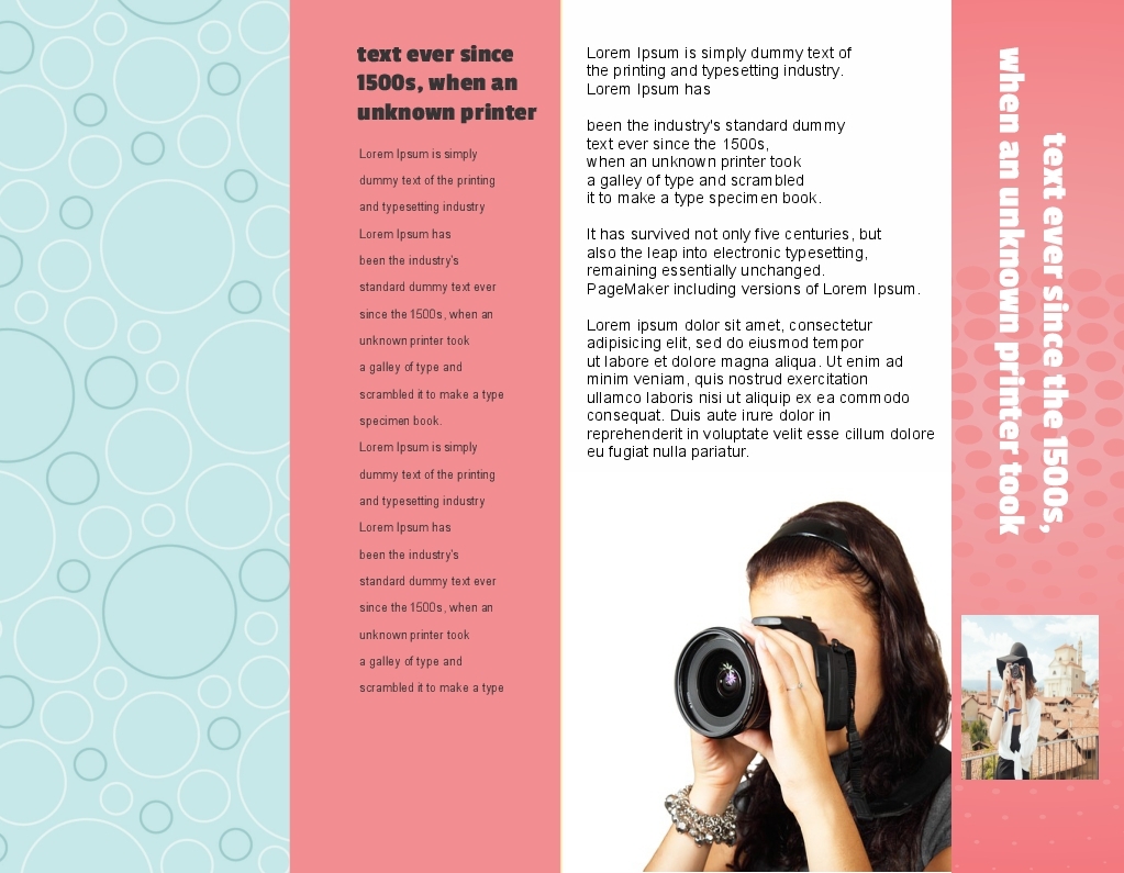 Trifold and bi fold brochures are both easy to make. PrintingCenterUSA.com’s tri-fold brochure templates will easily arrange your information so that everything is in the right place. Just drop in your text and images and check out.